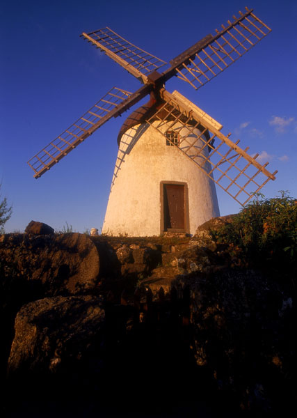 O ondular suave de montes emoldurados pelo azul do mar. Os muros de basalto negro por onde irrompe o verde viçoso das videiras. As silhuetas brancas de moinhos avivados pelo vermelho das cúpulas pontiagudas. Pinceladas de cor da aguarela viva que é a Graciosa. Tornada ainda mais bucólica por uma vivência feita de tranquilidade.